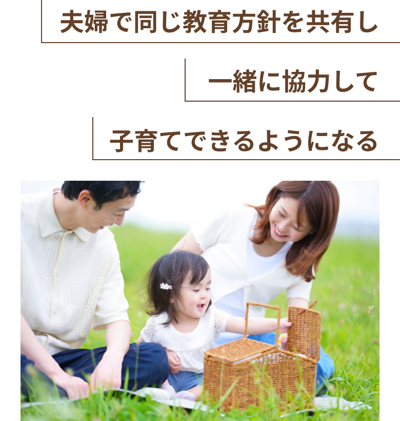 子どもへの接し方について話し合えることで、夫婦の絆もより深まり、頼れるパートナーと一緒に子育てに向き合える未来が待っています! -
