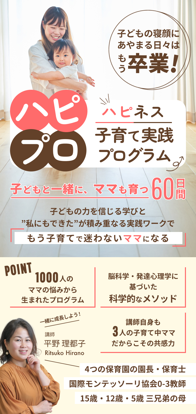 1000人以上のママの悩みから誕生したこのプログラムだからこそ、あなたの育児の悩みも解決の道がすでに見つかっています。