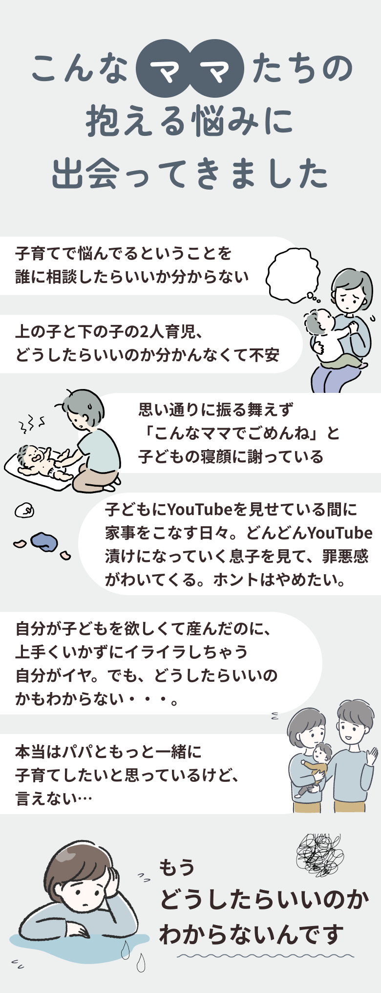 その愛情をどう形にすればよいのか分からず、不安や罪悪感に押しつぶされそうになっている方がたくさんいました。